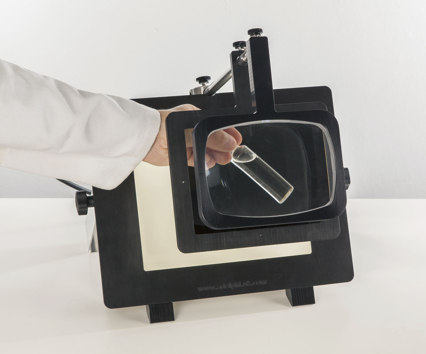 Designed for pharmaceutical and laboratory environments, the Adelphi Apollo I Liquid Viewer has a polarised inspection light for the detection of particulate matter in transparent liquids contained in ampoules, vials and bottles. Particulate contamination can be unintentionally present in injections and intravenous infusions, and this unit provides a simple method of detection.