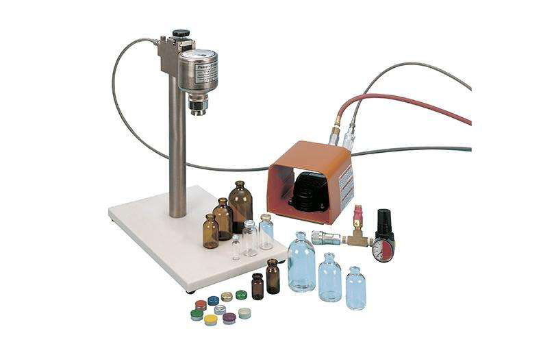 This vial crimping machine is a pneumatically powered unit with a stand, foot pedal and interchangeable screw-in heads. Designed to work with ‘plain’, ‘flip top/flip off’ and ‘flip tear up’ seals, for vials ranging in size from 8mm to 32mm. The unit enables fast and reliable crimping or decapping of vials and reduces operator fatigue.
