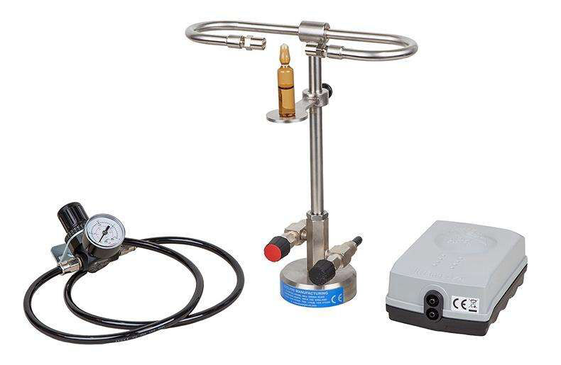 The Adelphi Twin Jet Ampoule Sealer is a hand operated unit, designed for use with natural or bottled gas and air. The ampoule is placed and held on the adjustable platform and turned while manually drawing off the ampoule top with tweezers. The end result is a professionally sealed ampoule.
